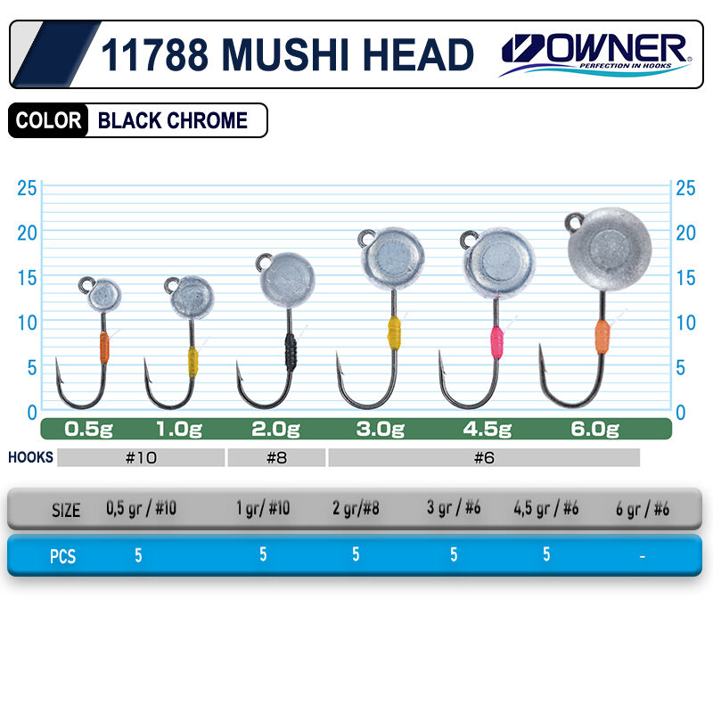 SIZE HOOK# COLOR 0.5 G #10 BLACK CHROME 1.0 G #10 BLACK CHROME 2.0 G #8 BLACK CHROME 3.0 G #6 BLACK CHROME 4.5 GR #6 BLACK CHROME